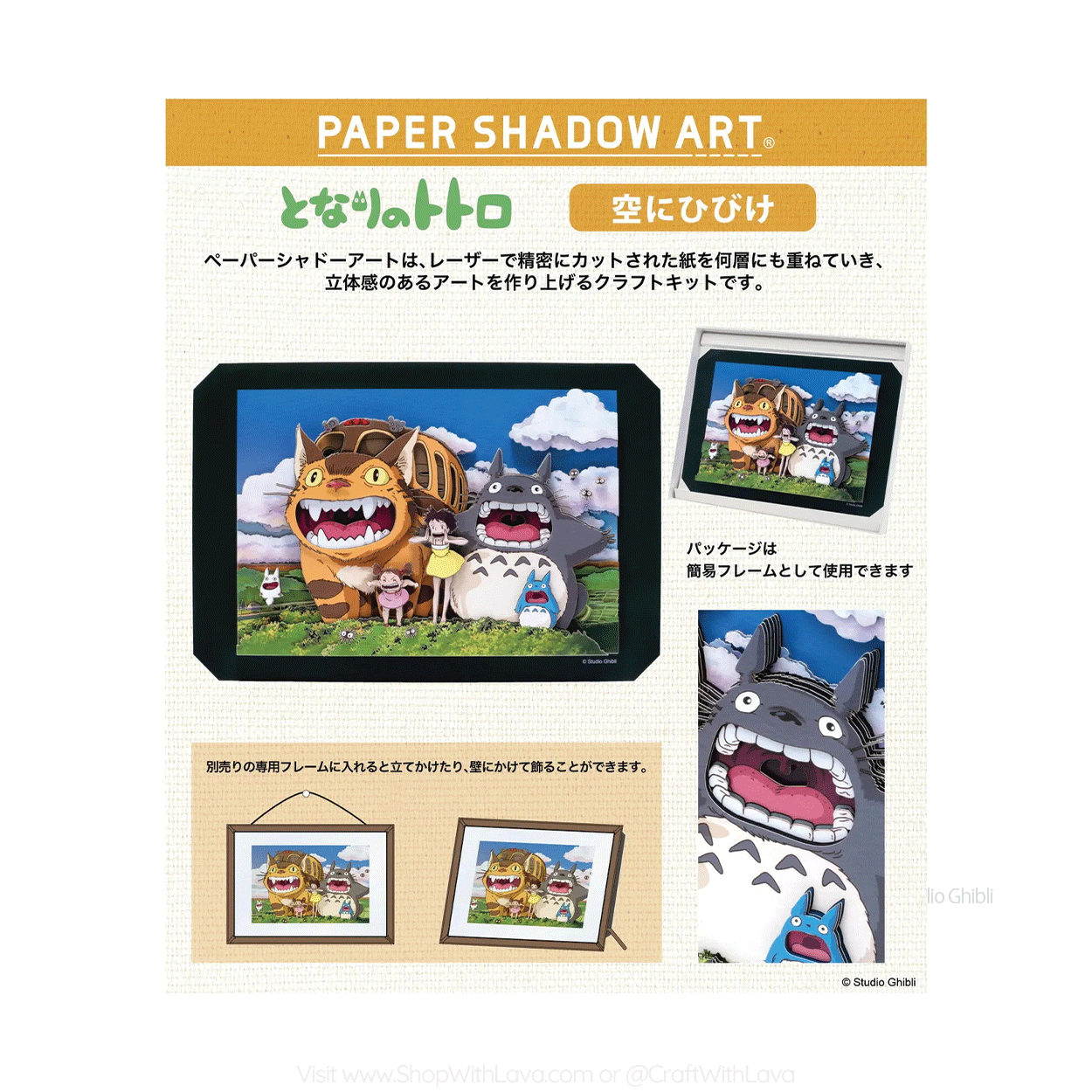 Paper Shadow Art is a craft kit that allows you to recreate famous art/animation scenes by stacking multiple layers of precisely laser-cut paper to create three-dimensional art. When placed in a special frame (sold separately and available at our shop), it can be displayed standing up or hanging on a wall. Enjoy the world of movies with craft kits from Craft With Lava!